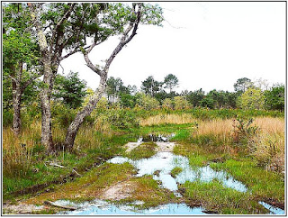 Puis viennent les landes de Bordeaux. Pour les traverser, il faut trois jours de grandes fatigues. Cette terre est dépourvue de toutes bonnes choses; on n'y trouve ni pain, ni vin, ni viande, ni poisson, ni fontaines; les habitations sont rares; c est une plaine de sable. Cependant, elle produit en abondance du miel, du millet, du panis et des porcs à bois. Si vous traversez ce pays en été, protégez soigneusement votre visage contre les mauvaises mouches, les guêpes et les taons qui abondent dans la contrée. Il faut prendre garde aussi à bien poser son pied sur le sable marin qui couvre le sol, pour ne pas enfoncer jusqu'au genou.